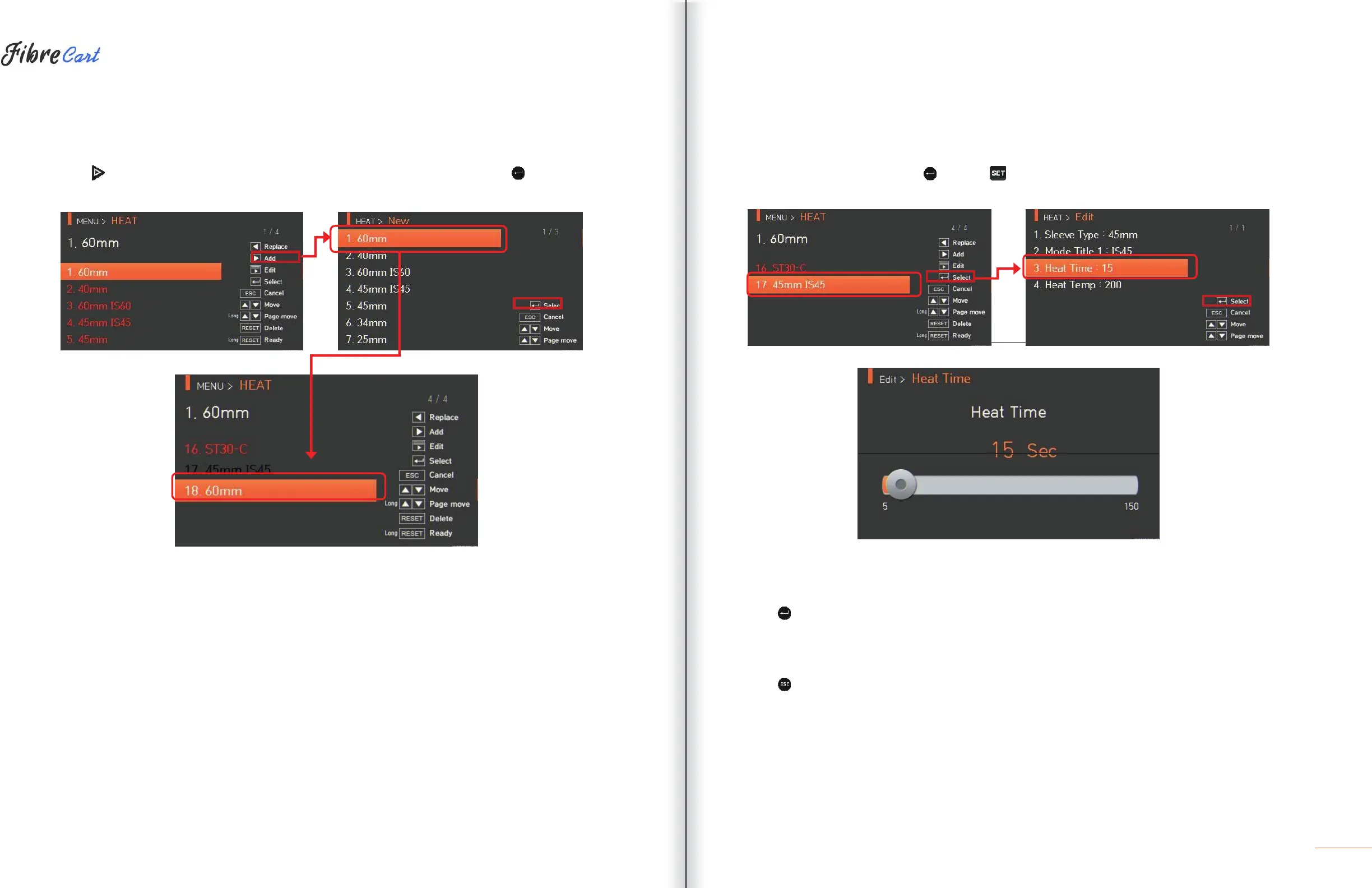 to display heater modes on the screen. Select a heater mode to add and press to add. The newly