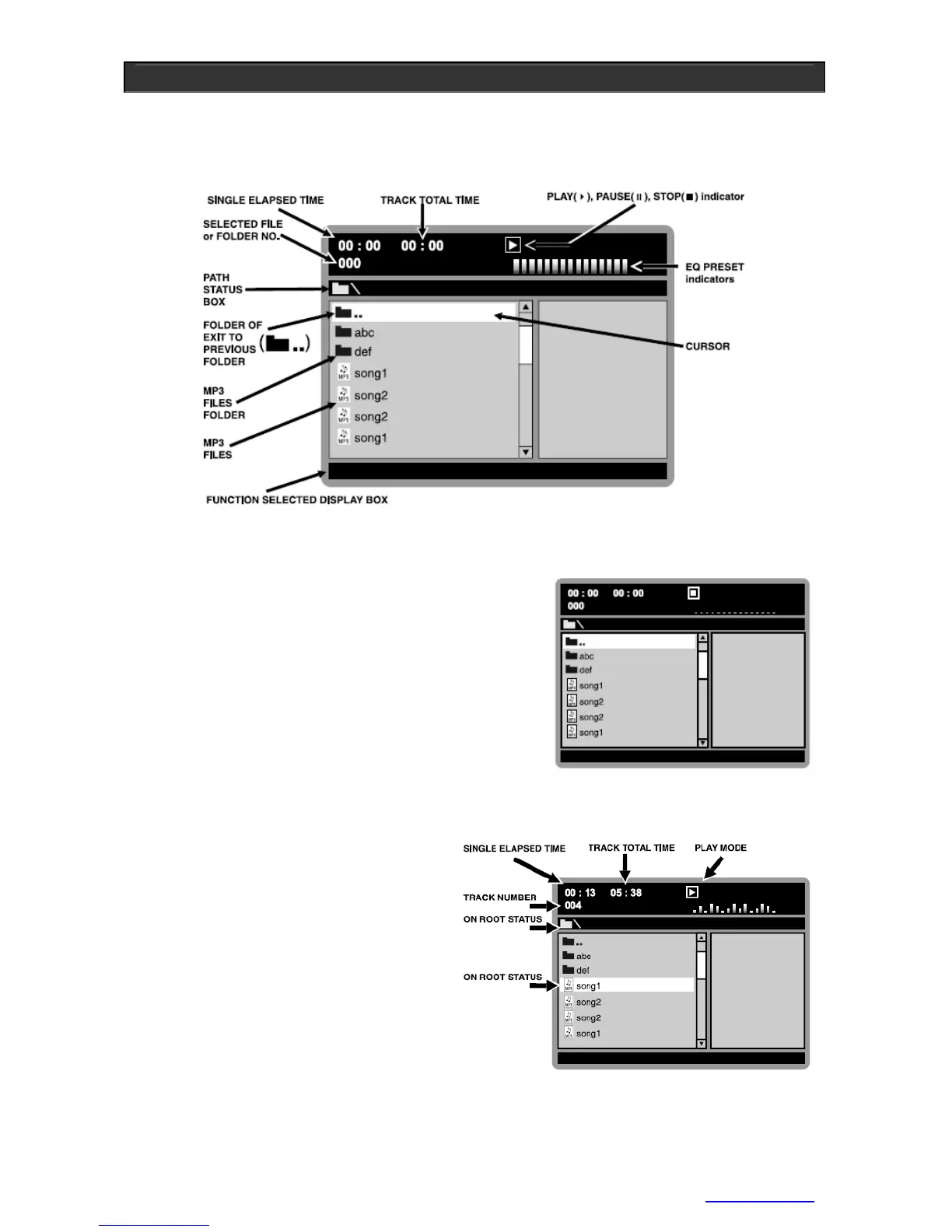 After the MP3 file browser appears on the screen, the