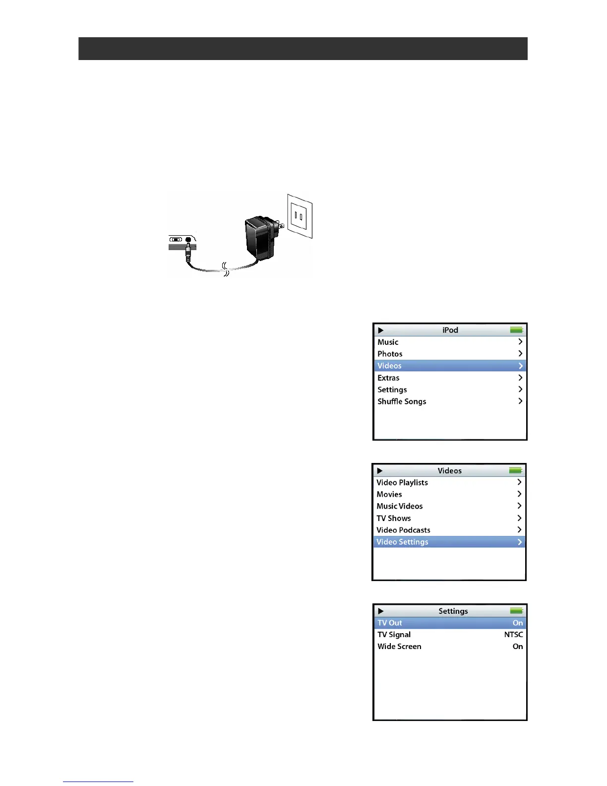 see your favorite iPod videos on the 8.4” LCD screen, follow the instructions below: