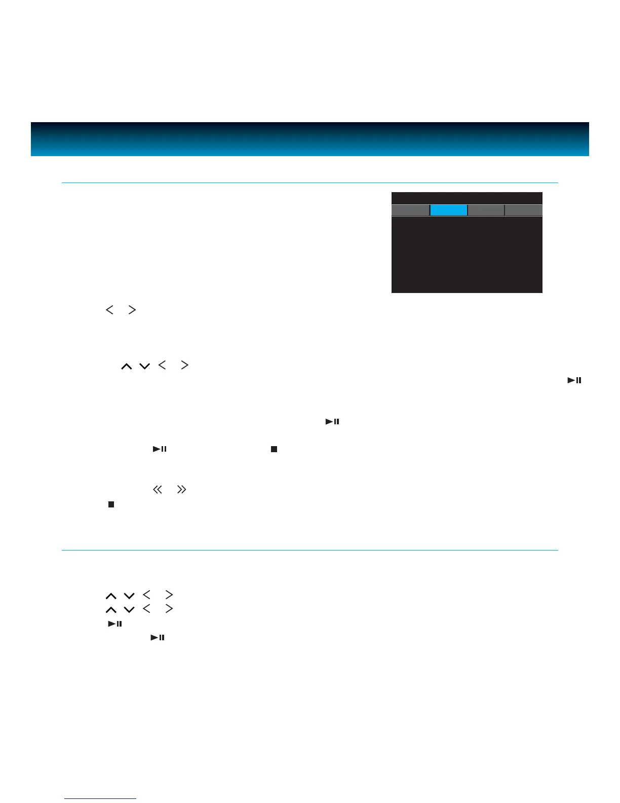 b. If playing Divx, a VCD or Audio CD, the video or audio track will play automatically. If not, press