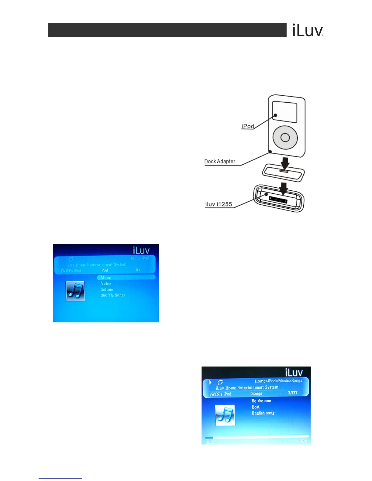 Before playing iPod, always connect the video to TV through composite video or S-Video, and