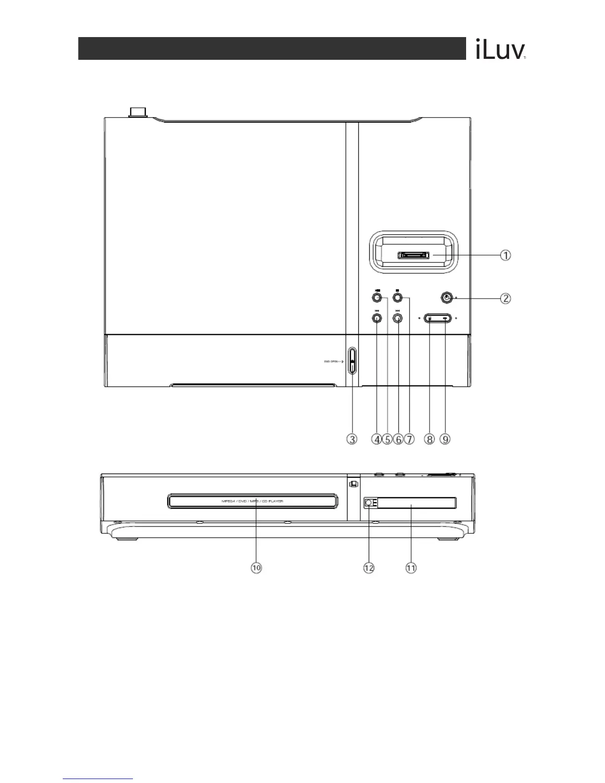 1. iPod DOCK 5. PLAY / PAUSE BUTTON 9. DVD BUTTON