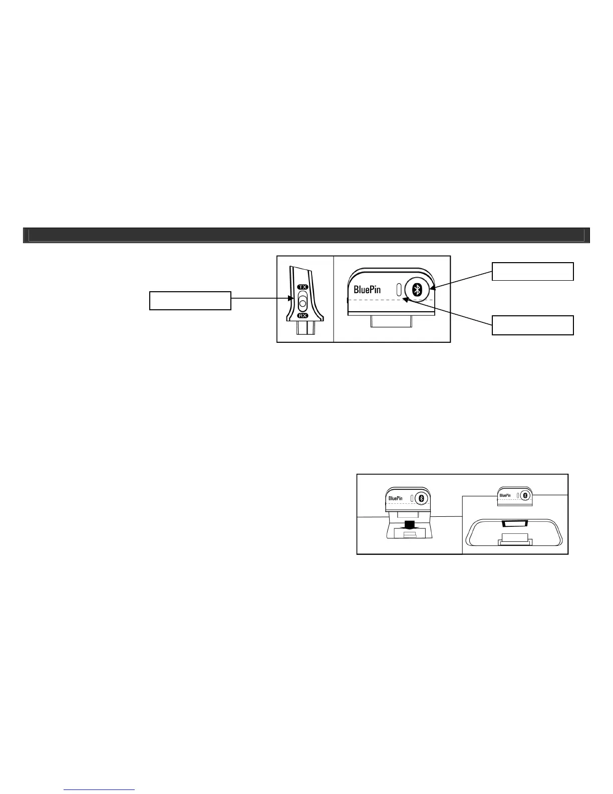 Note: Illustrations on these pages depict the first version of the BluePin. This unit,