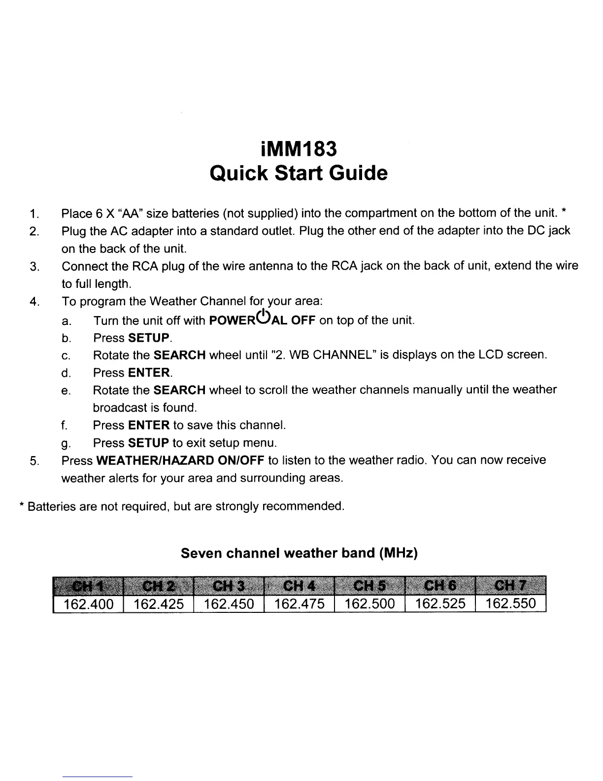 Seven channel weather band (MHz)