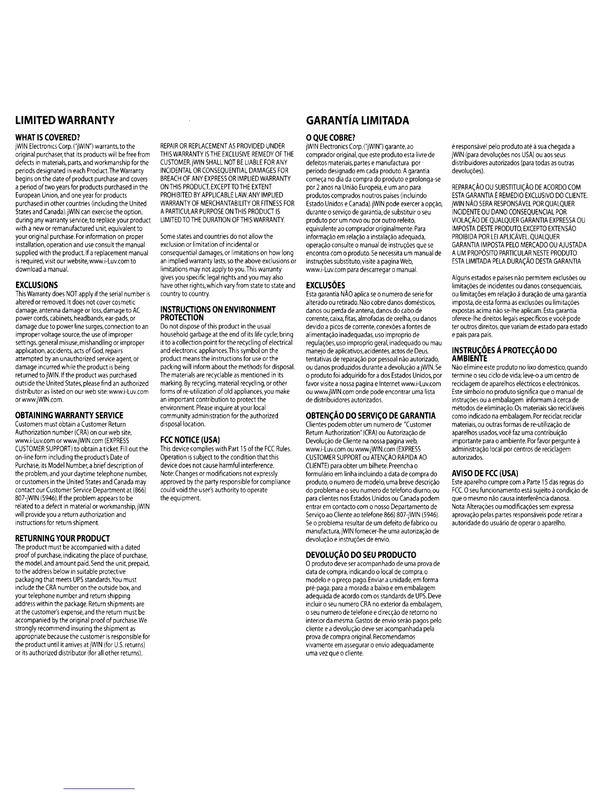 Iluv iMM183 - Limited Warranty; Warranty Coverage Details; Warranty Exclusions; Warranty Service and Returns