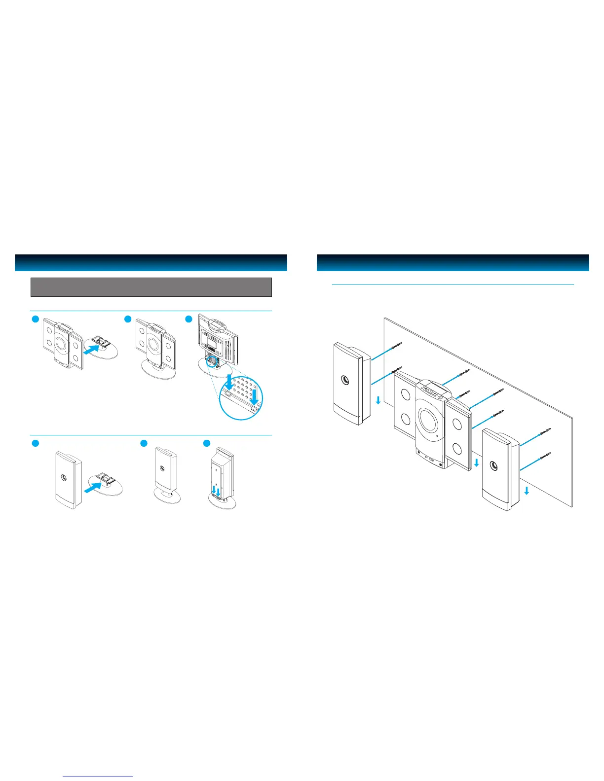 Secure the center unit and speakers on the wall (Solid concrete wall or wooden wall should be