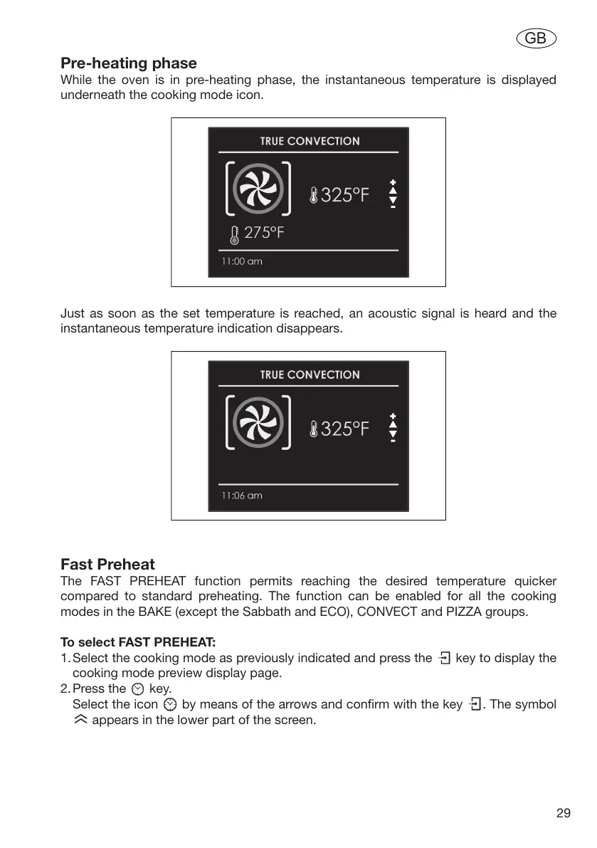 The FAST PREHEAT function permits reaching the desired temperature quicker