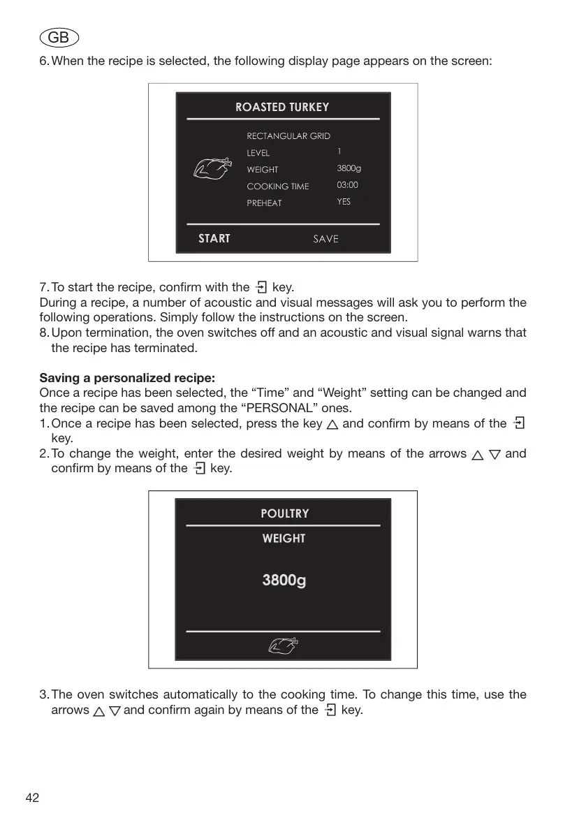 1. Once a recipe has been selected, press the key and confirm by means of the
