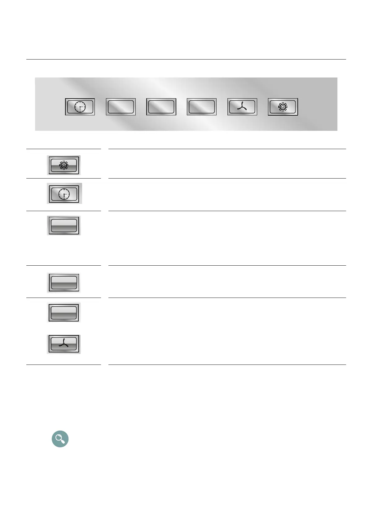 By pressing the “TIMER” push button while the hood is working, the clock symbol will start
