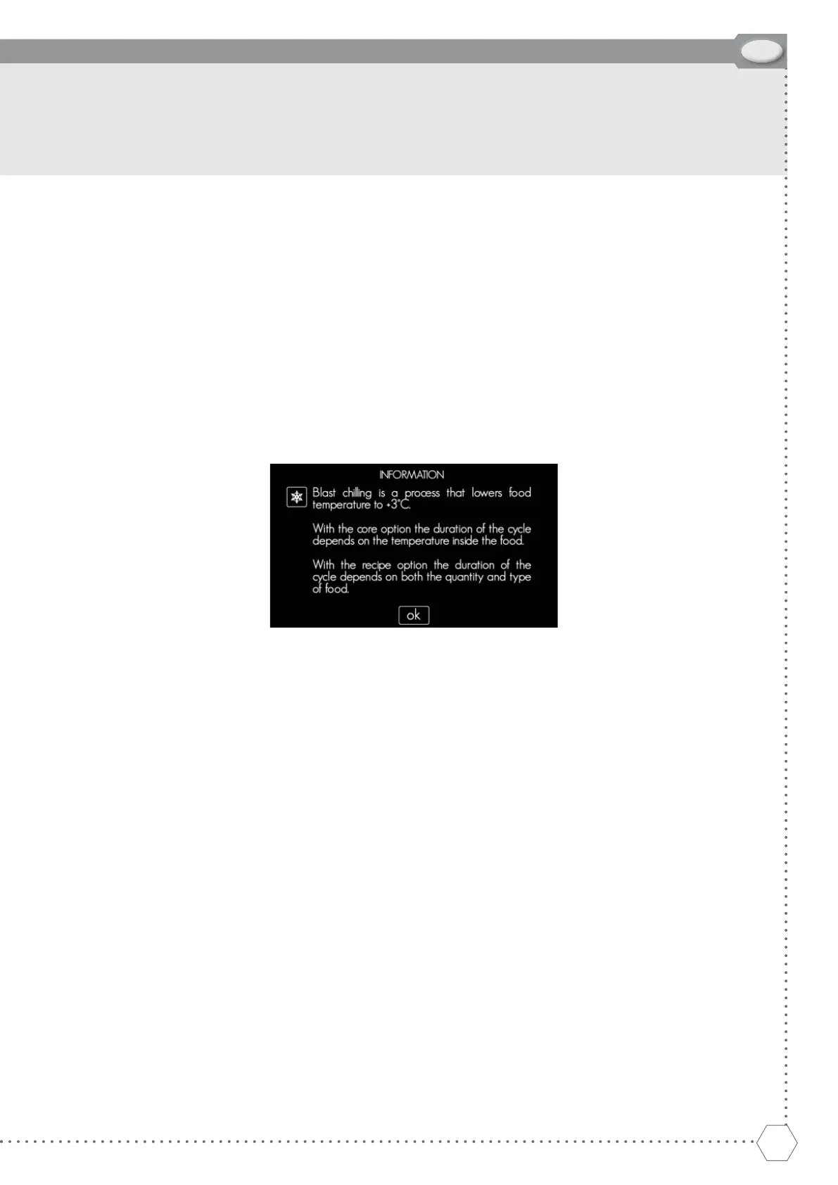 The “Deep freezing”, “Raw fi sh” and “0°C Preservation” programs also include an automatic defrosting stage