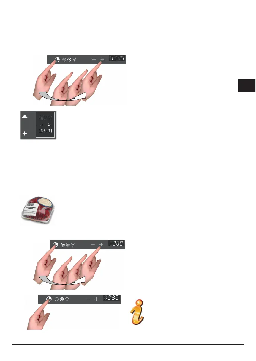 By combining the two modes, “cooking time” and “end-of-cooking time”, you can program the oven so that