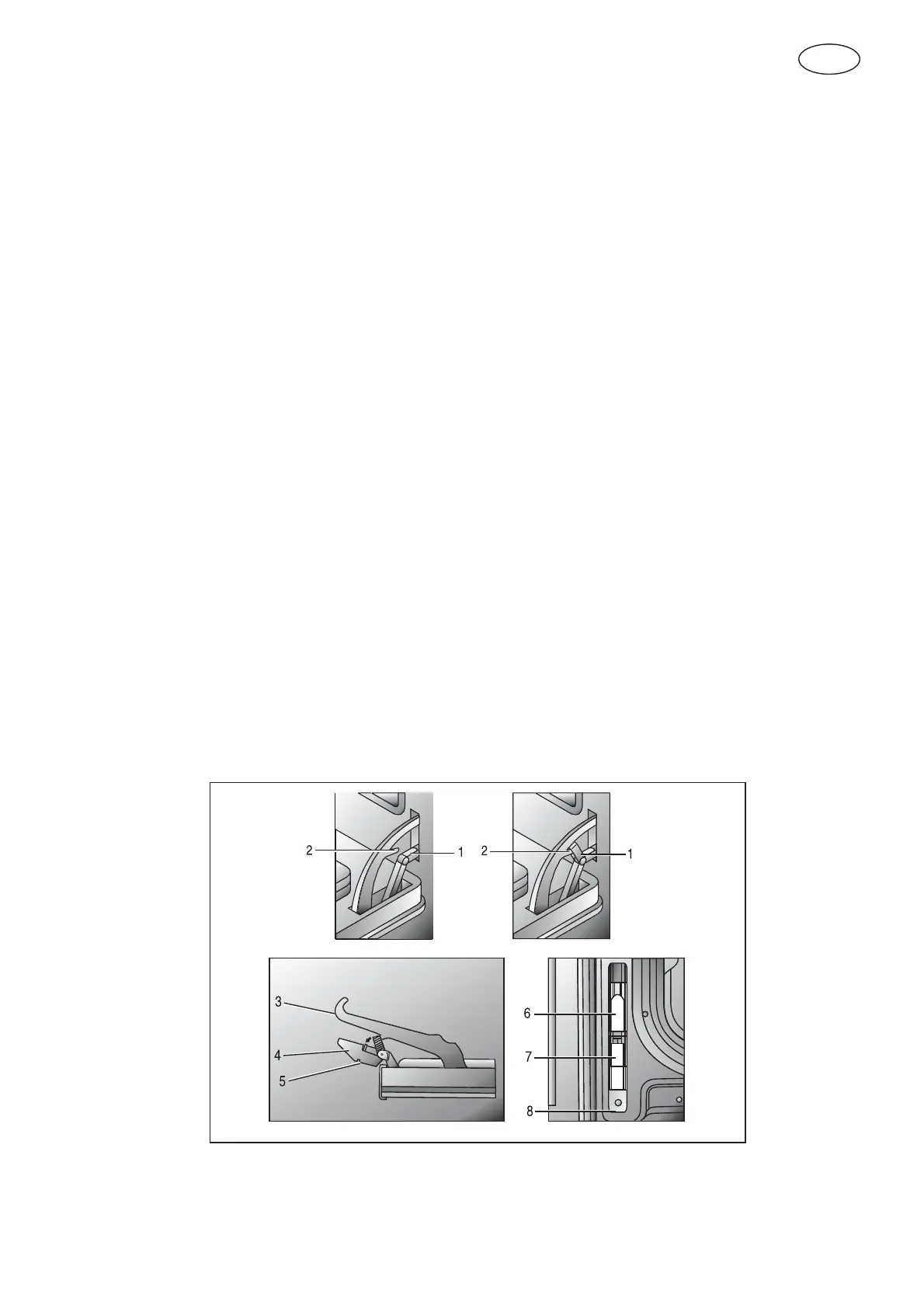 lower arms (4) into the lower slots (7). The recesses (5) must hook on the lips (8).