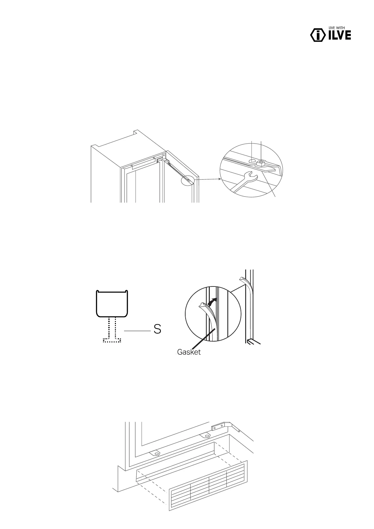 Install the ventilation grill at the kick panel void section at the appliance base cabinet. Fix the ventilation grill into the kick strip. Fig. 8.