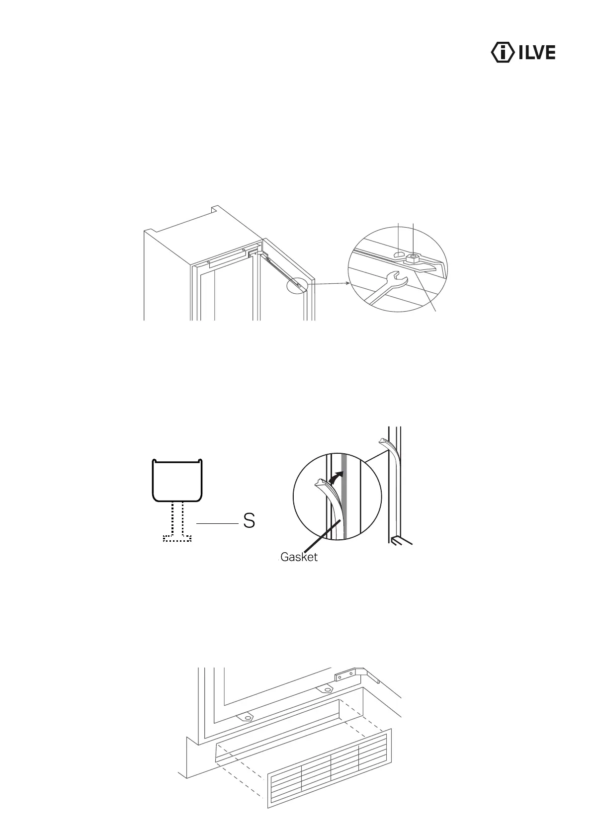 Install the ventilation grill at the kick panel void section at the appliance base cabinet. Fix the ventilation grill into the kick strip. Fig. 8.
