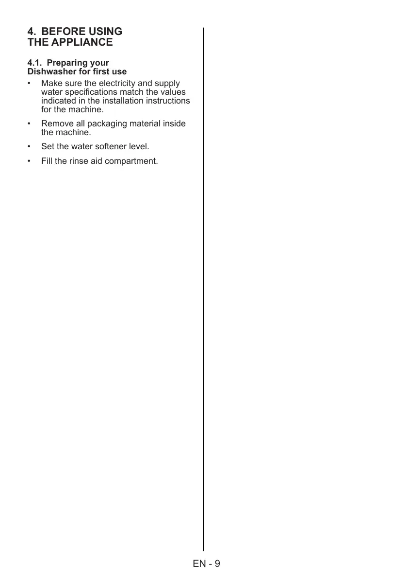 Dishwasher for first use