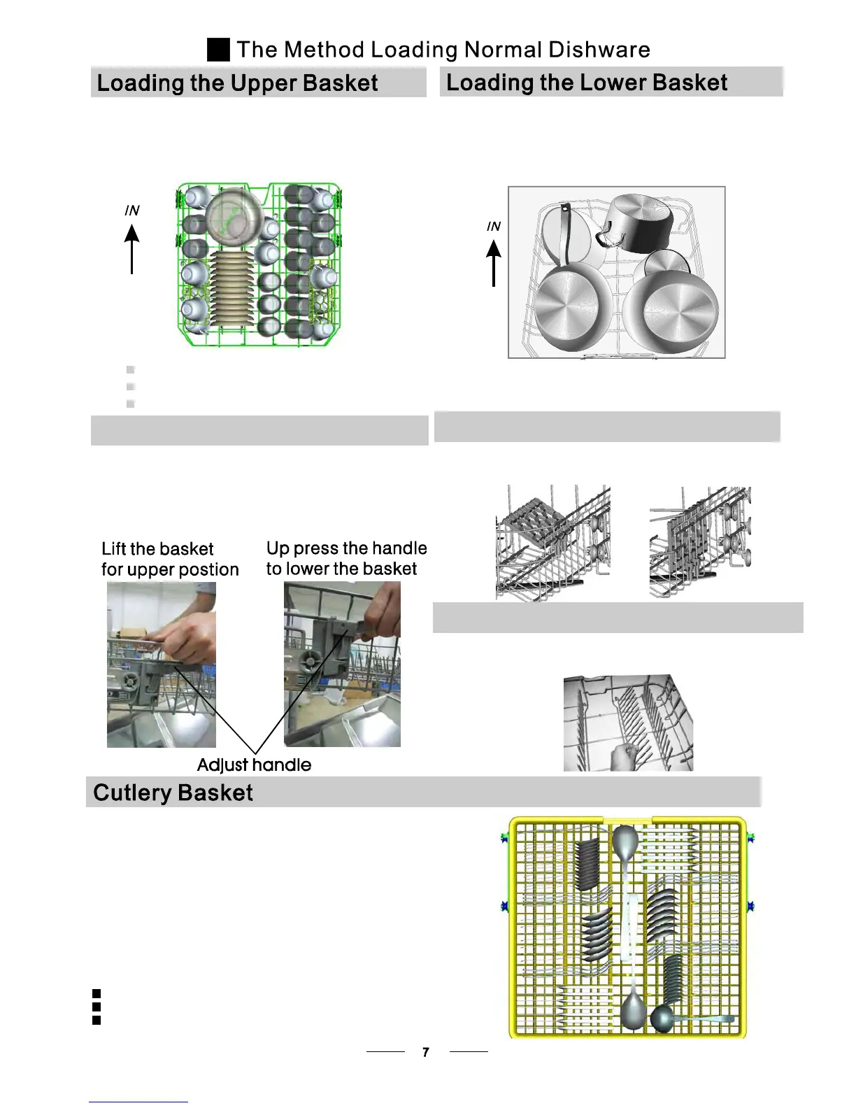 pres s the handle to lo we r the upper baske t, s ee the pic ture