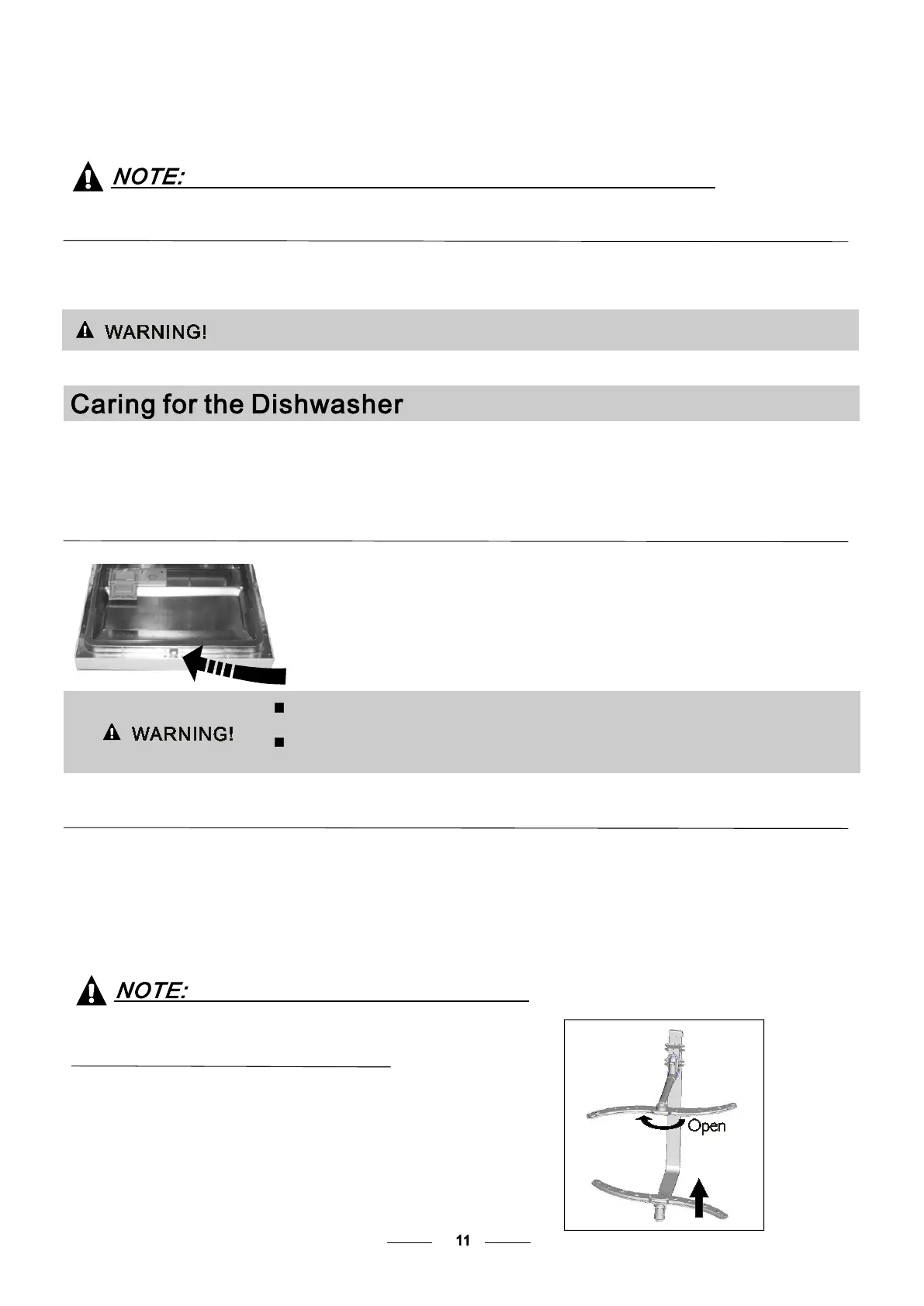 1.Cut off the electrical power to the dishwasher.