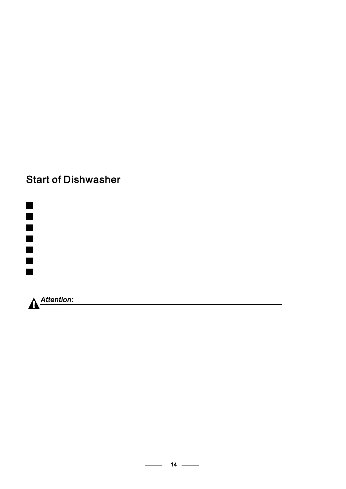 The following things should be checked before starting the dishwasher.