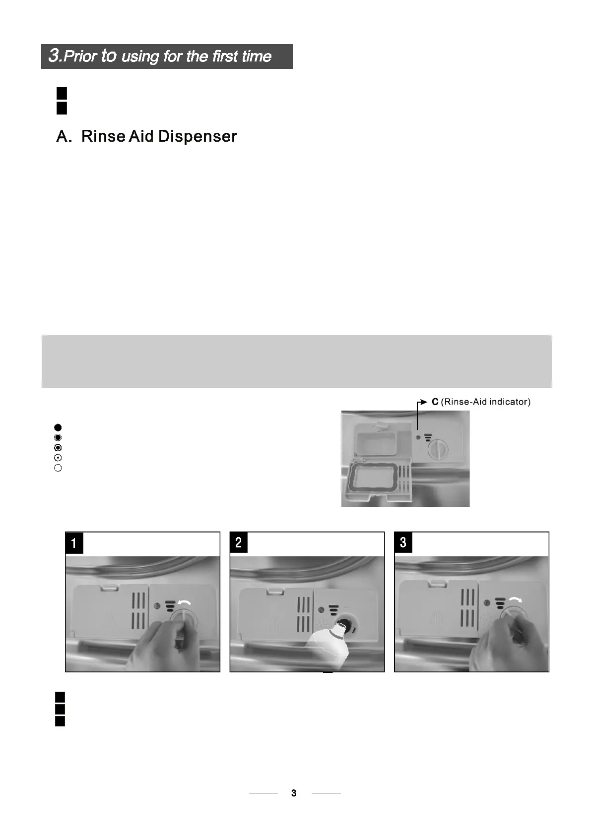 indicator "C" located next to the cap. When the rinse-aid container is full, the whole indicator will be dark .As the