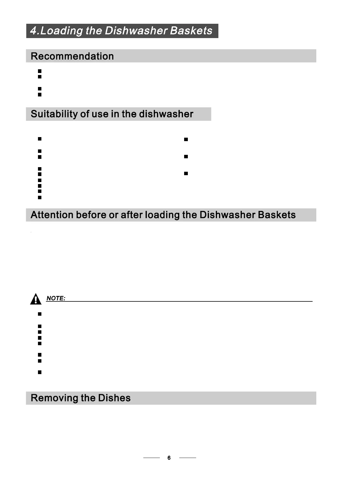 Load hollow items such as cups, glasses, pans etc. With the opening facing downwards so that