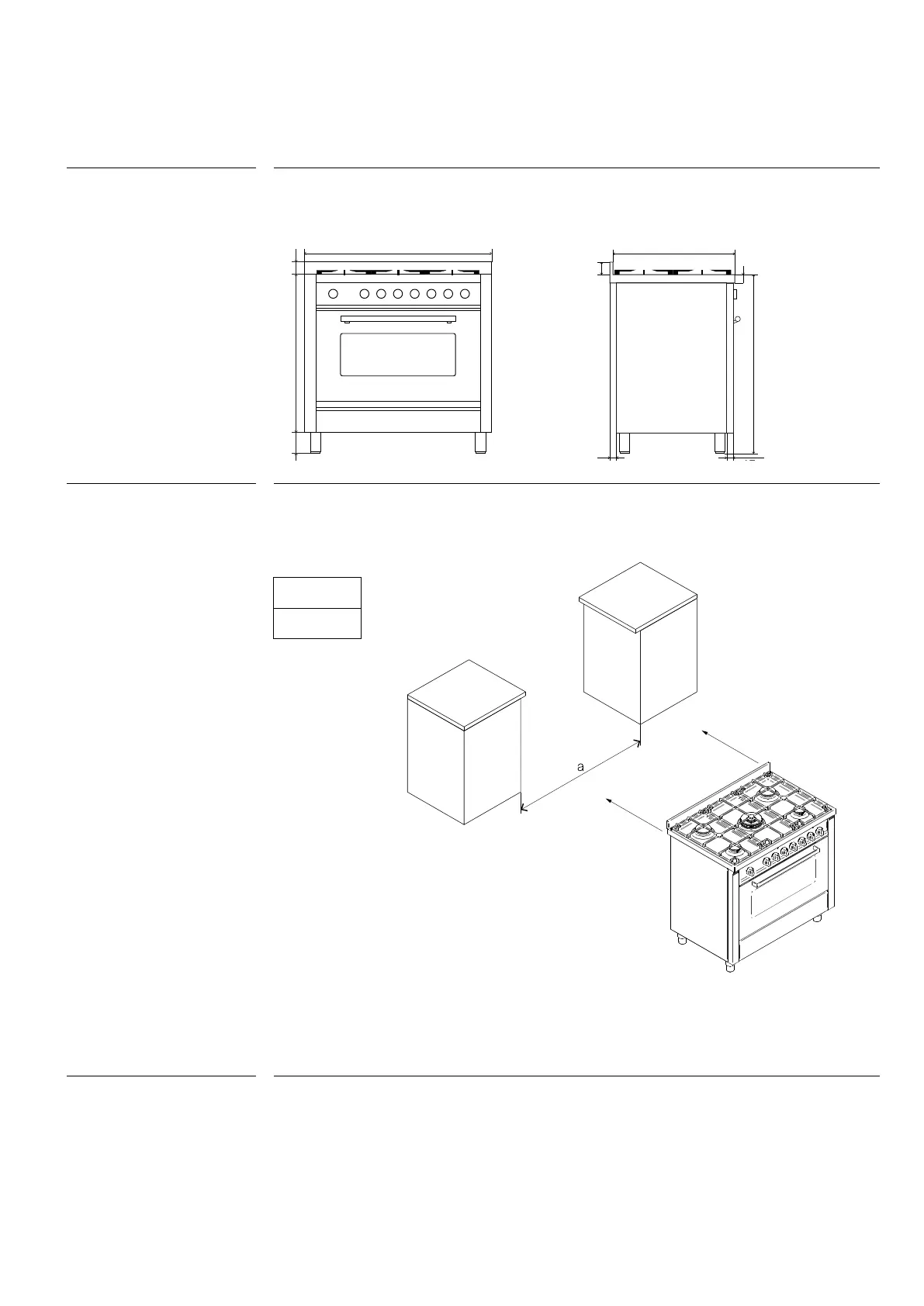 appliance (when looking from the front), 210mm from the side and 200mm from the