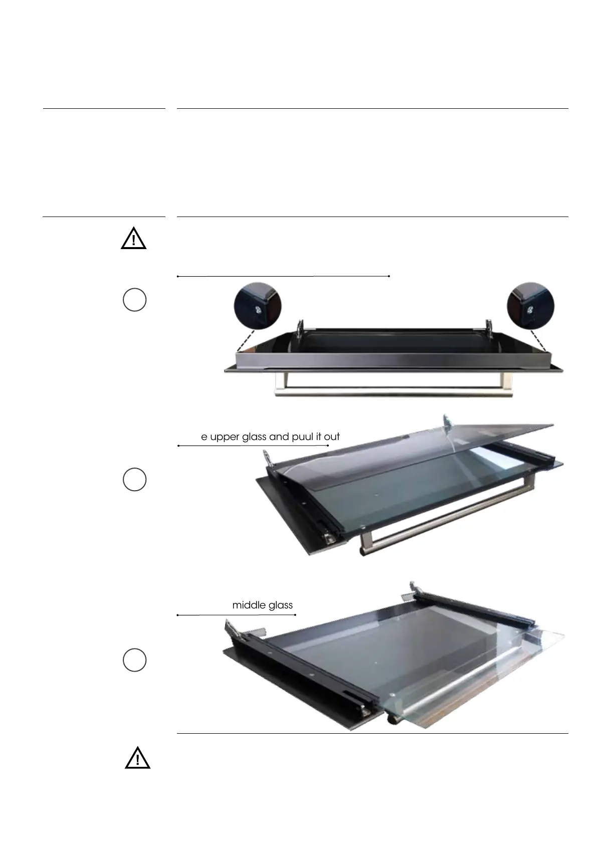 The inside glass may be removed to facilitate cleaning. To do this it is necessary to