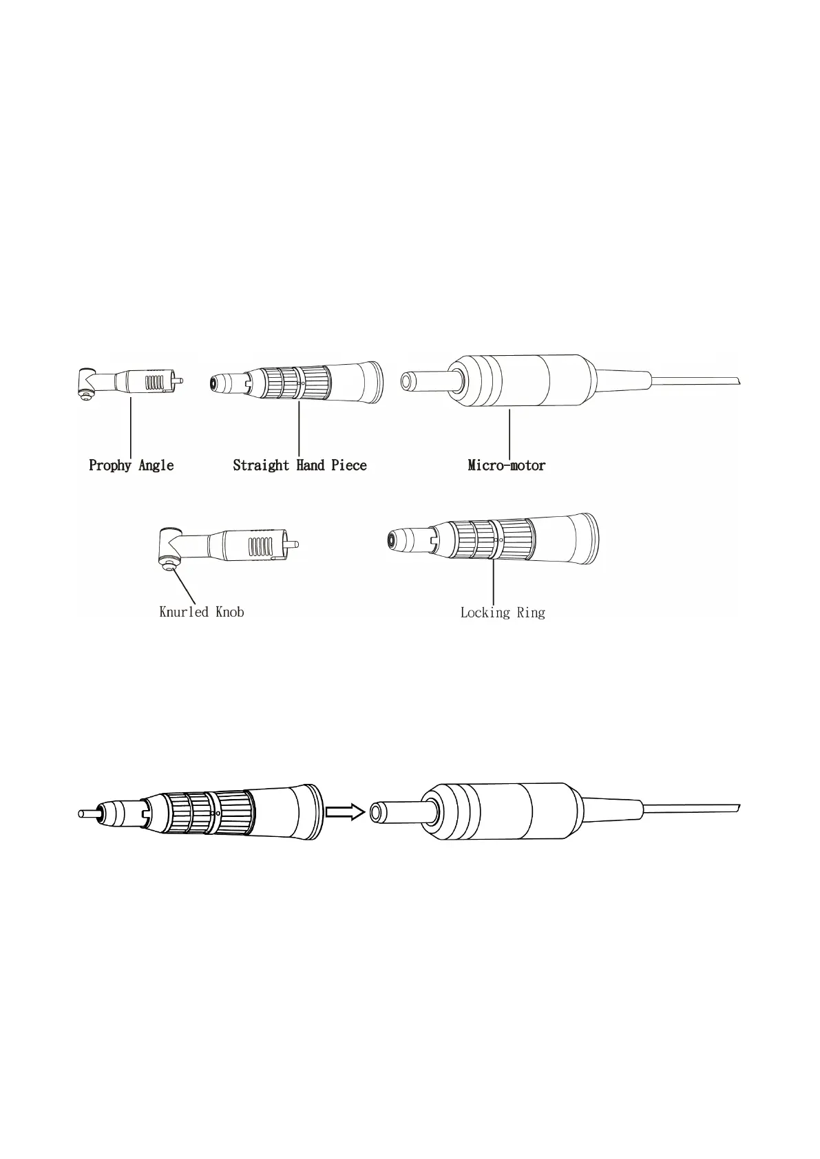 Para montar la pieza manual de pulido, conecte el ángulo profiláctico ,la pieza de mano recta y el