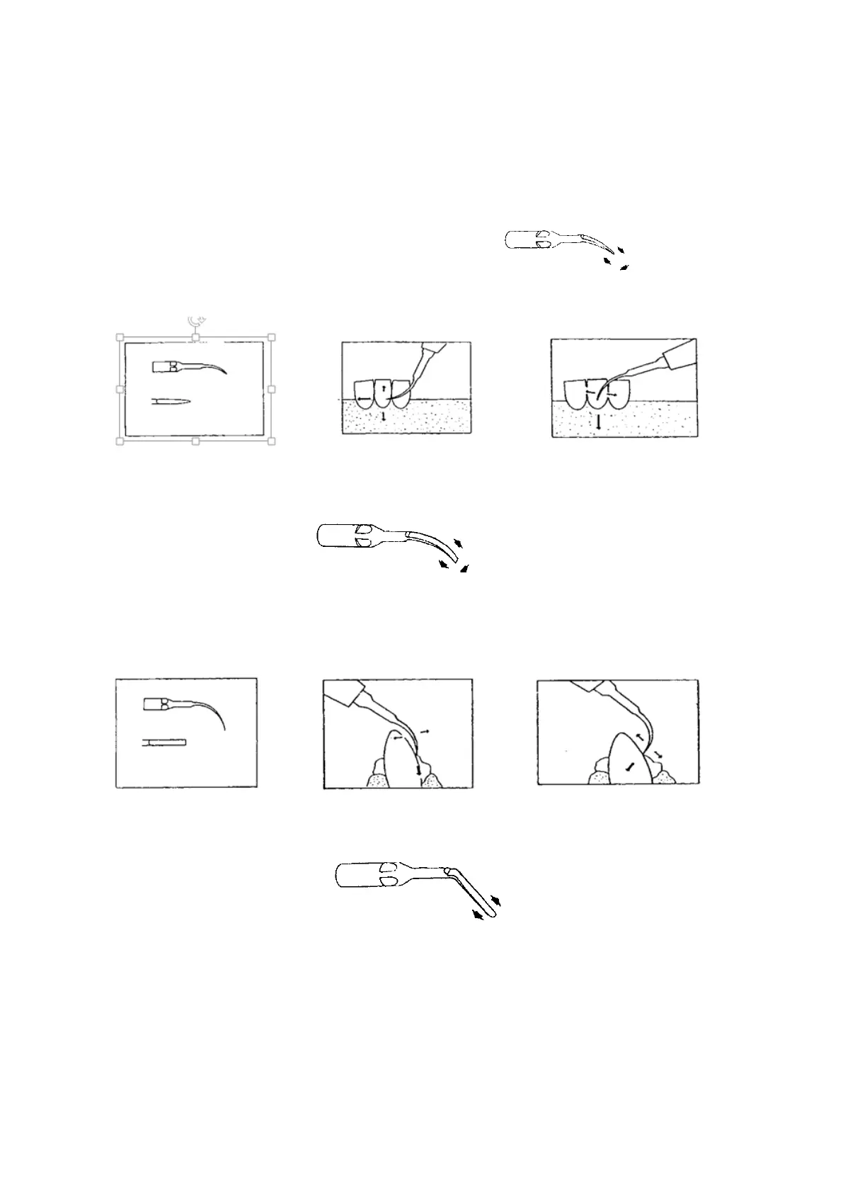 La pointe de la BS2 directement contre le tartre, mais pas directement sur la dent. Utilisez une petite