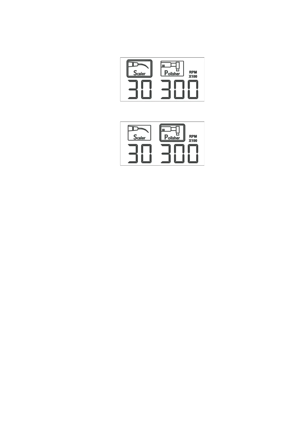 geben die aktuelle Drehzahl des Mikromotors an (x 100 UpM).