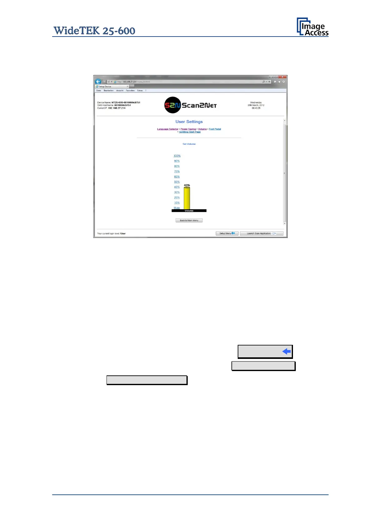 Click the button Volume to set the loudspeakers volume of the scanner.