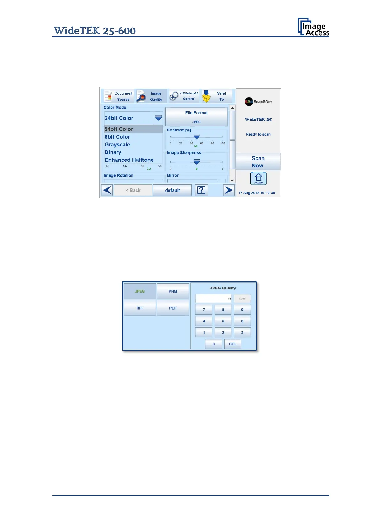 With the JPEG file format, a value for the image quality can be entered by the numeric