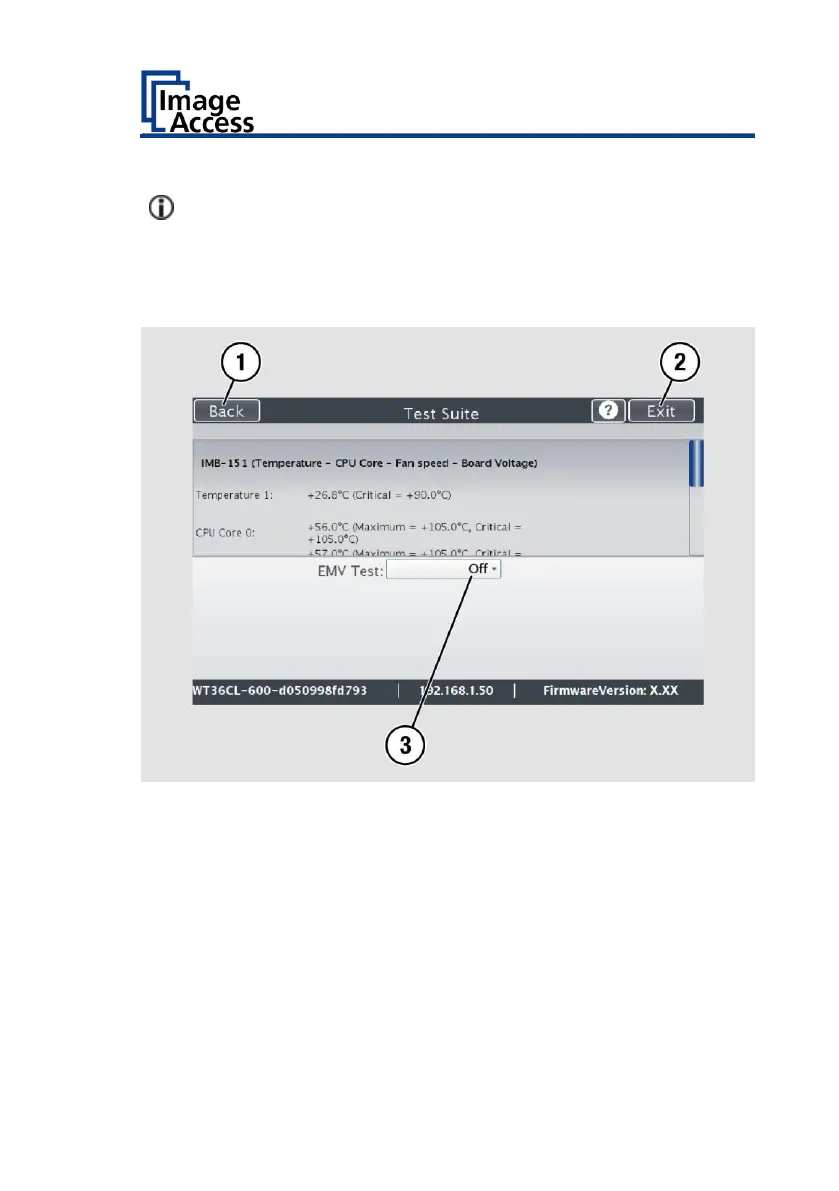 To perform the electromagnetic compatibility test, select the entry "on"