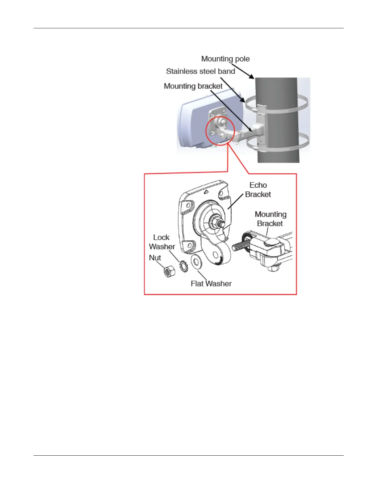 2. Secure the RTMS Echo to the mounting bracket using the flat washer, lock