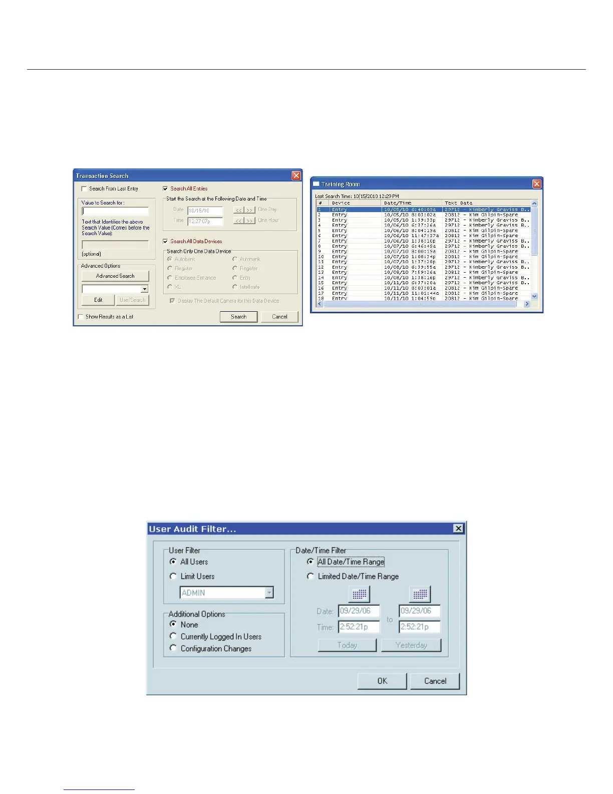 activity to camera signal detection to power loss. The User Audit speci cally tracks user activity; it provides the data for the Viewing