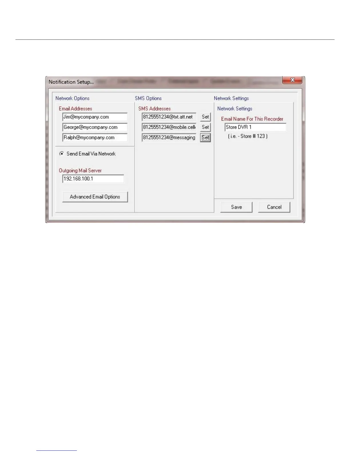 SMS Text Messages: To enter a cell phone number to receive an SMS text message click a “Set” button under SMS Addresses. Enter