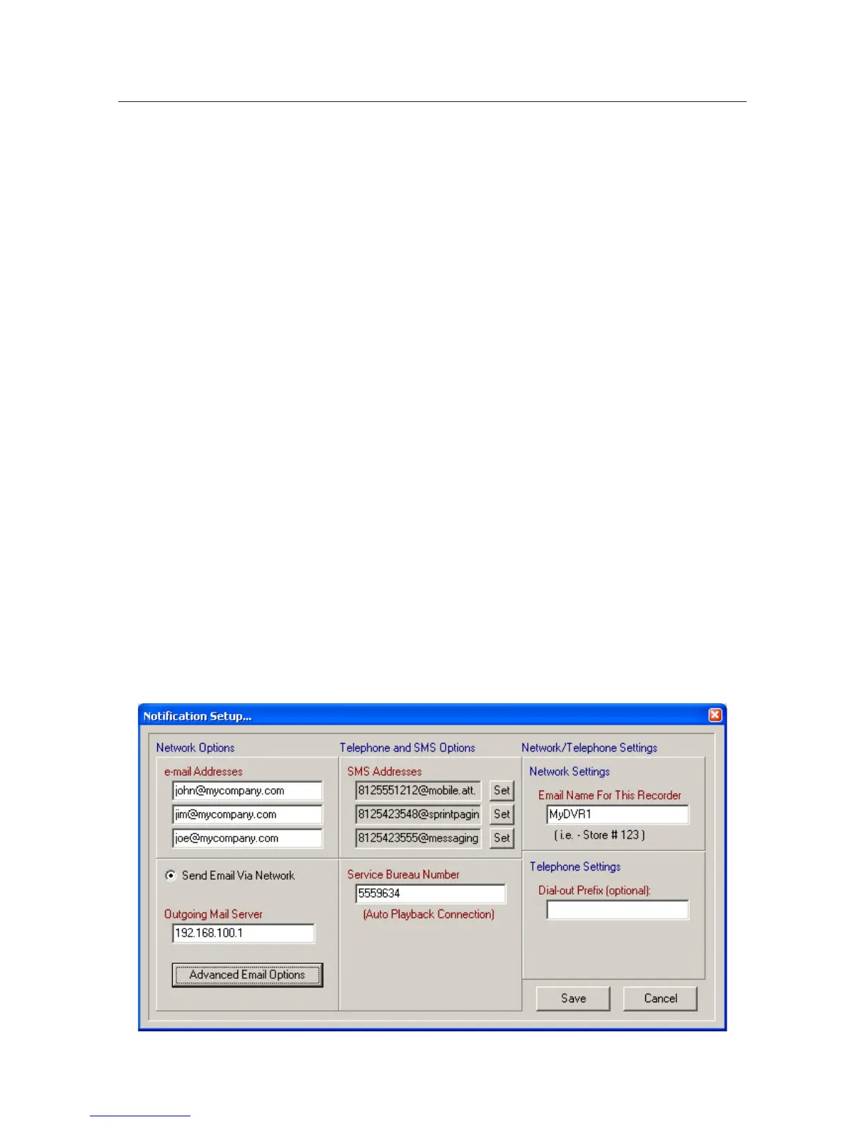 receive alarms from the DVR. Enter an “Email Name For This Recorder” under