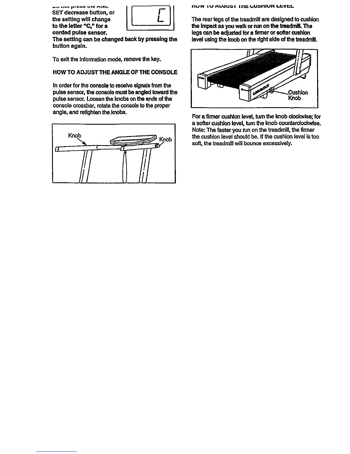 level usingthe knobonthe dghtsldeofthetreadmill