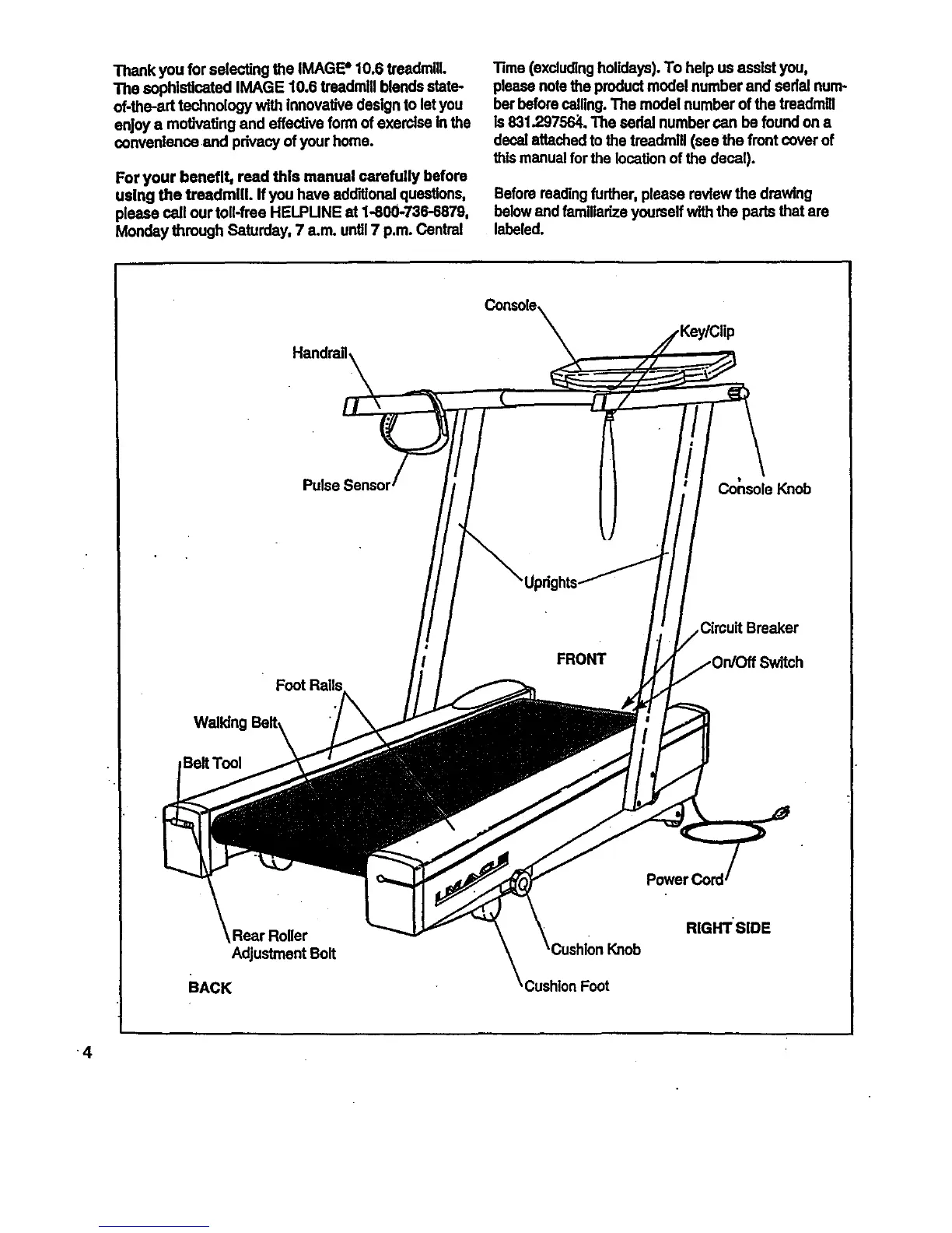 Thank you for selecting the IMAGE ° 10.6 treadmill.