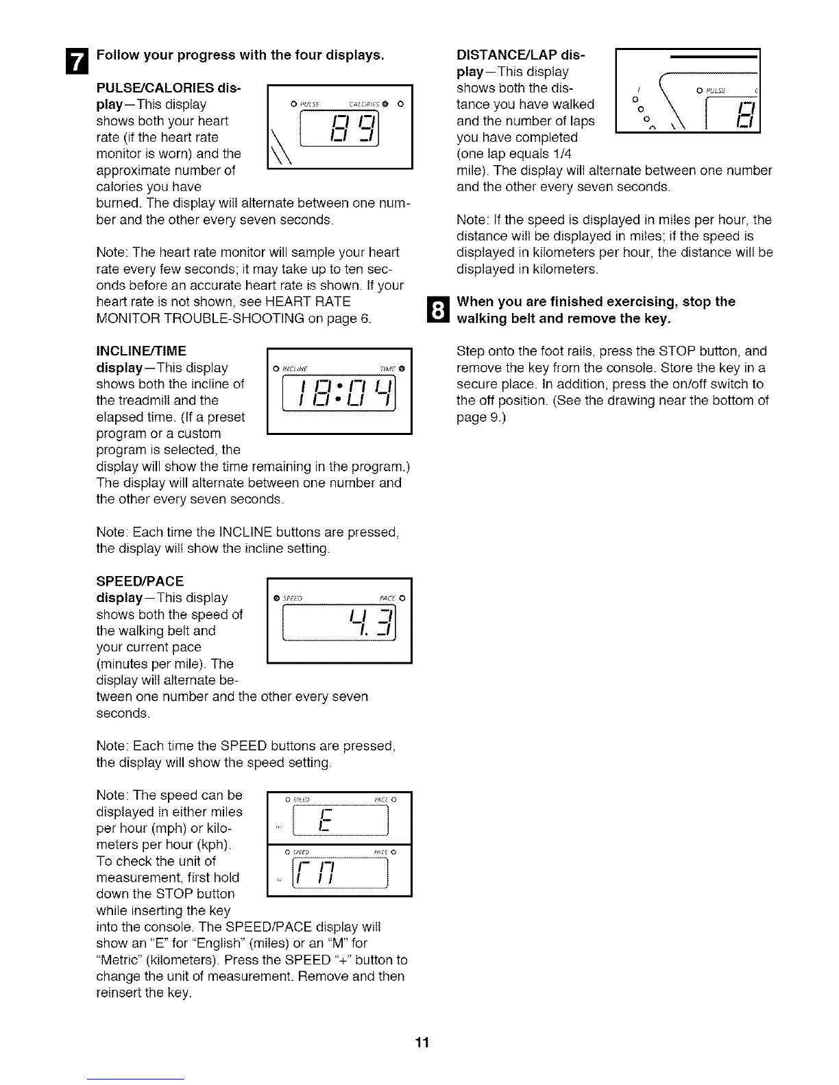 into the console. The SPEED/PACE display will