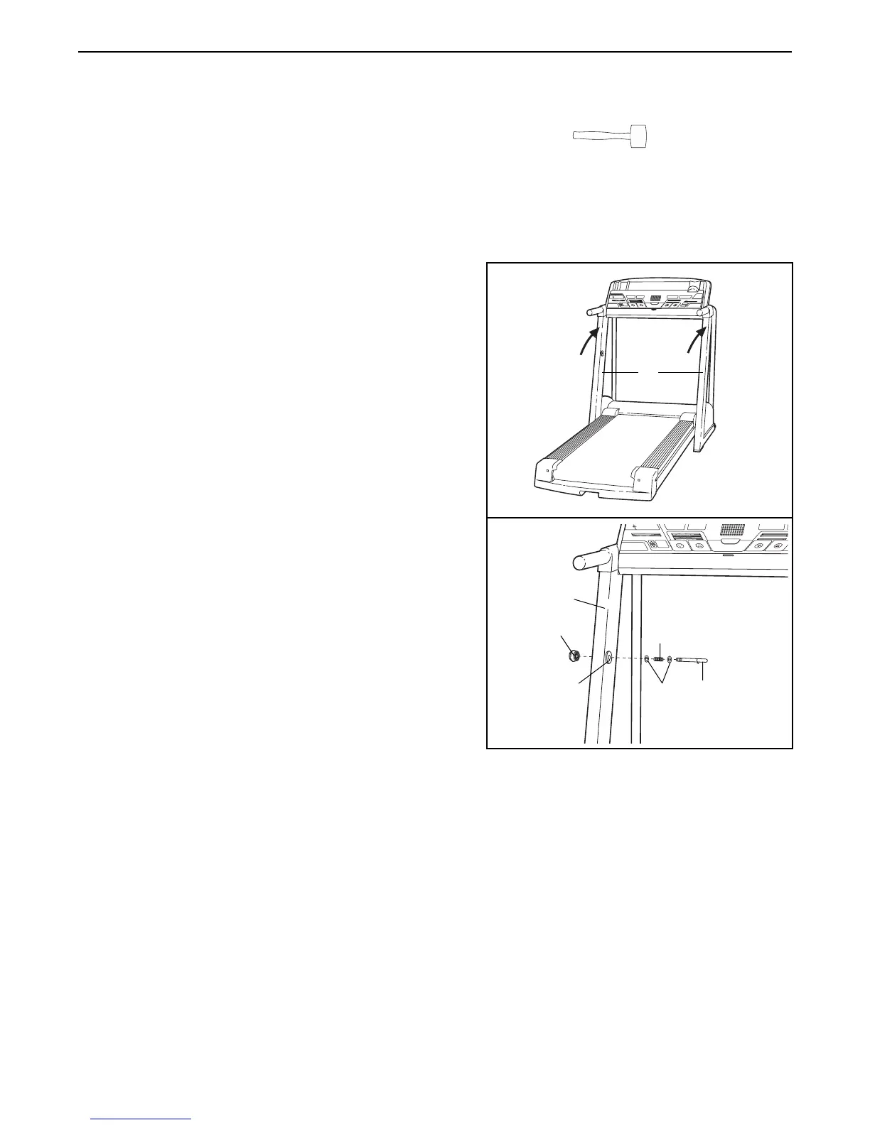 Uprights (65) until the treadmill is in the position shown.