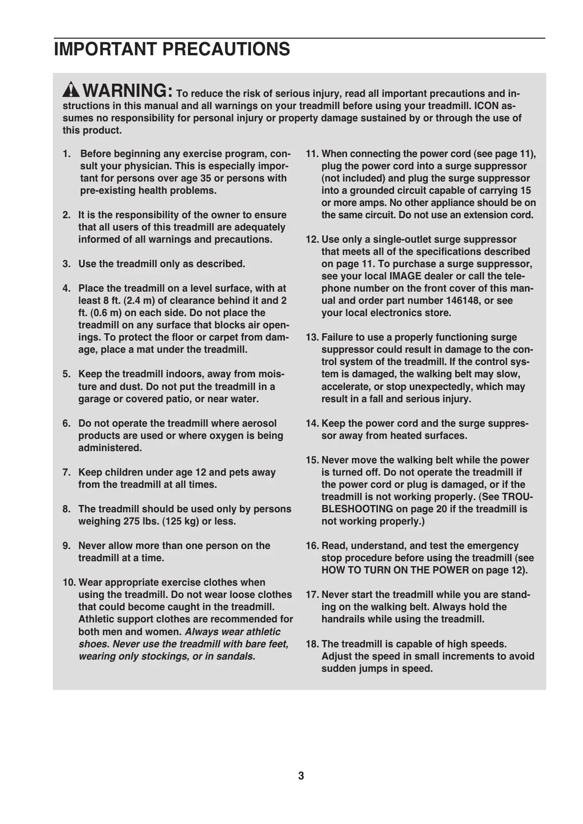 structions in this manual and all warnings on your treadmill before using your treadmill. ICON as-