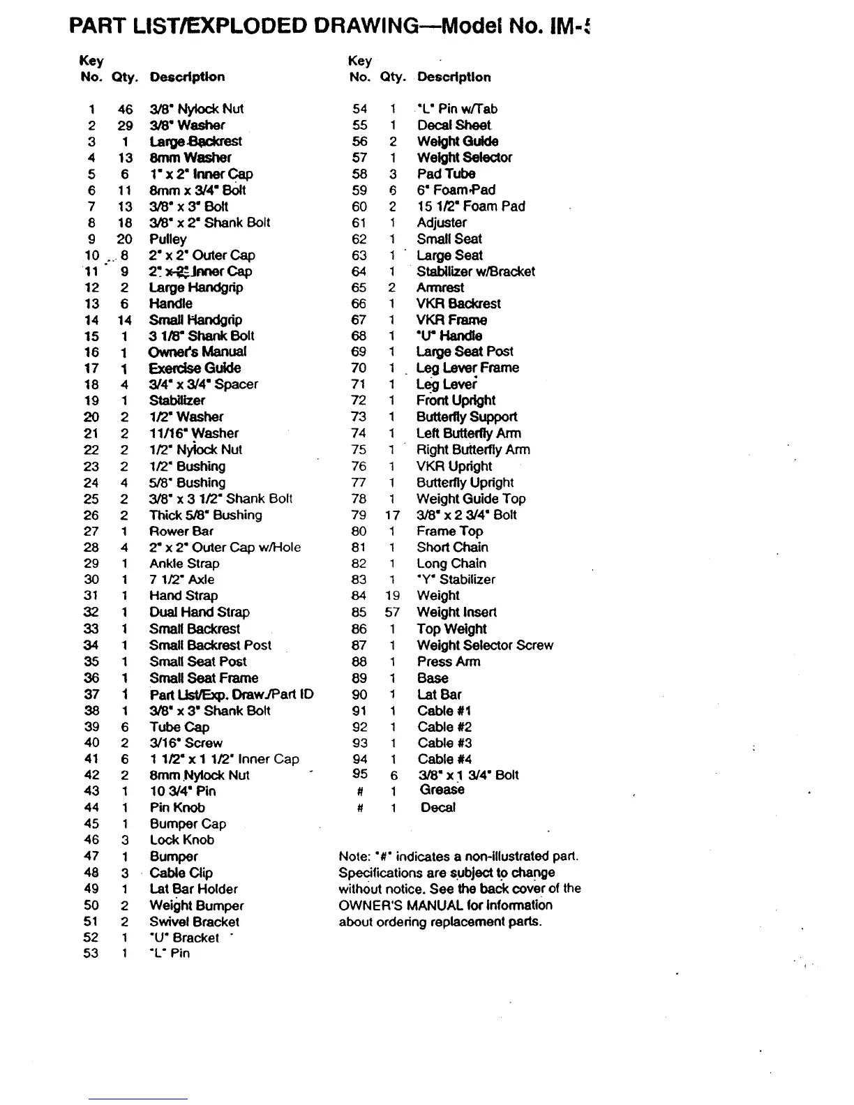 Image 516 - Part List;Exploded Drawing - Model No. IM-5