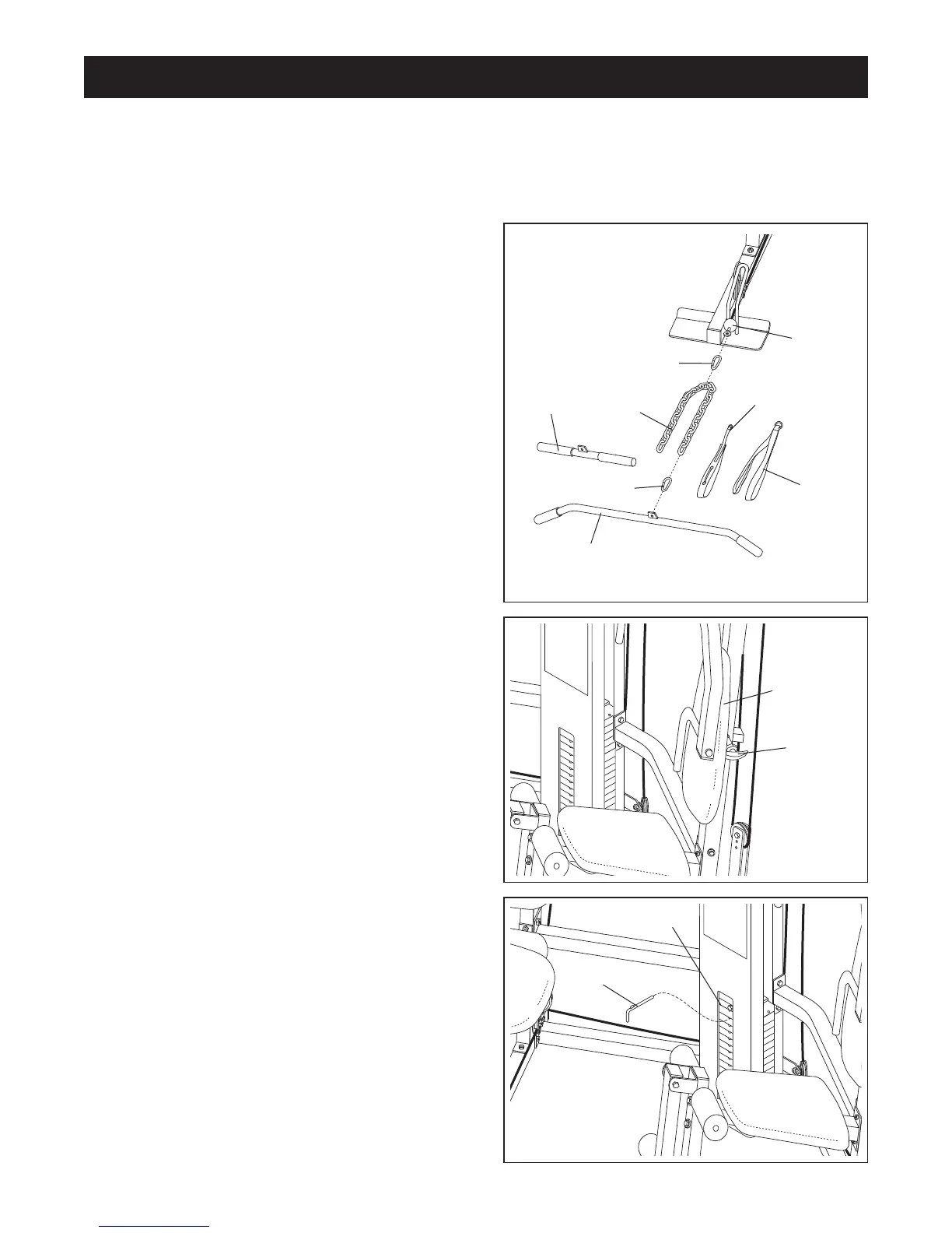 Attaching the Lat Bar, Row Bar, Nylon Strap or Ab