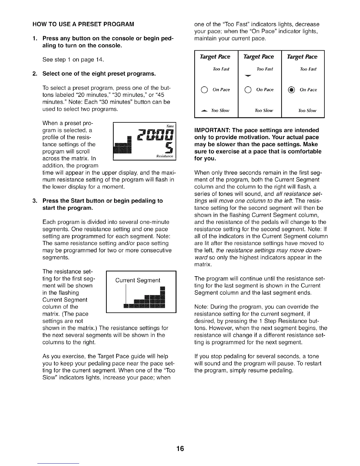 segments. One resistance setting and one pace