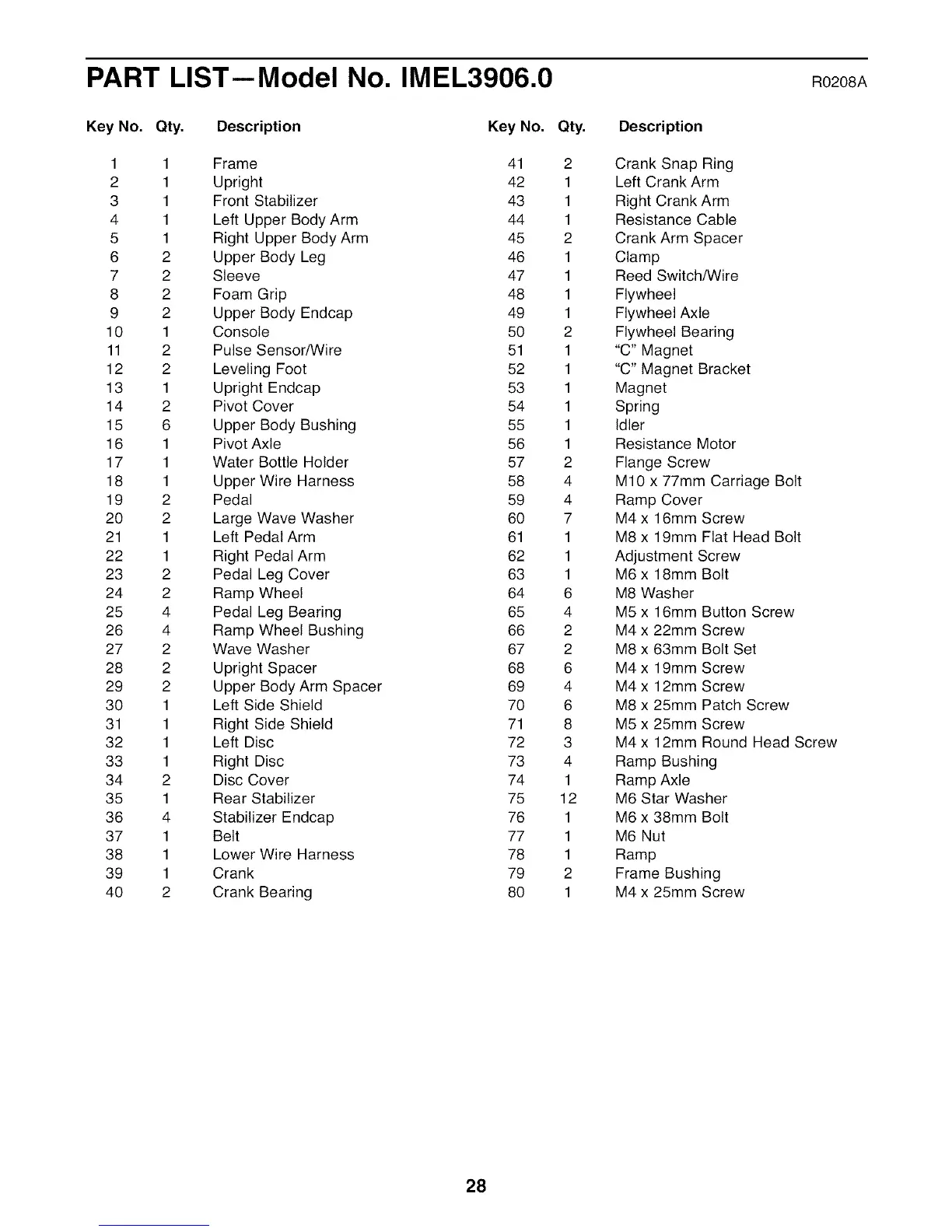 PART LIST--Model No. IMEL3906.0 Ro2o8A