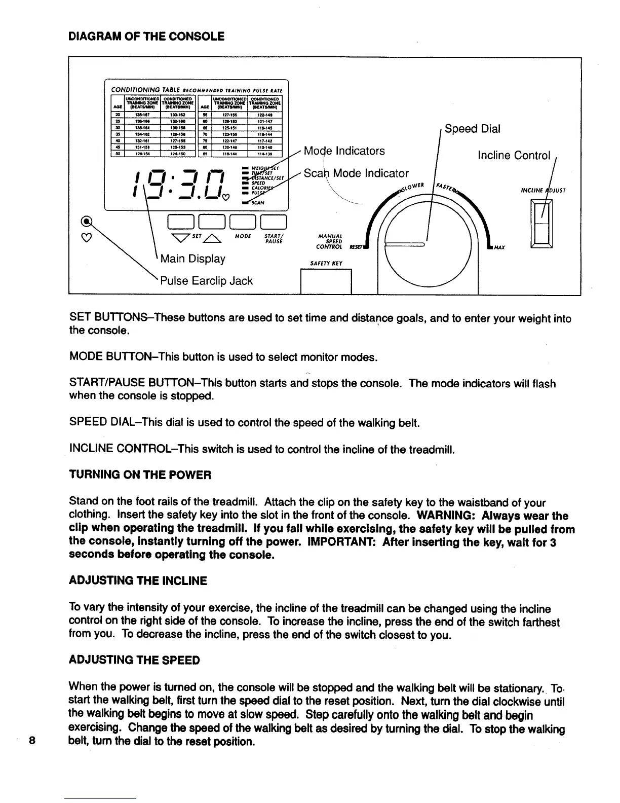 Image 920 - Console Operation; Console Controls and Diagram; Treadmill Operation