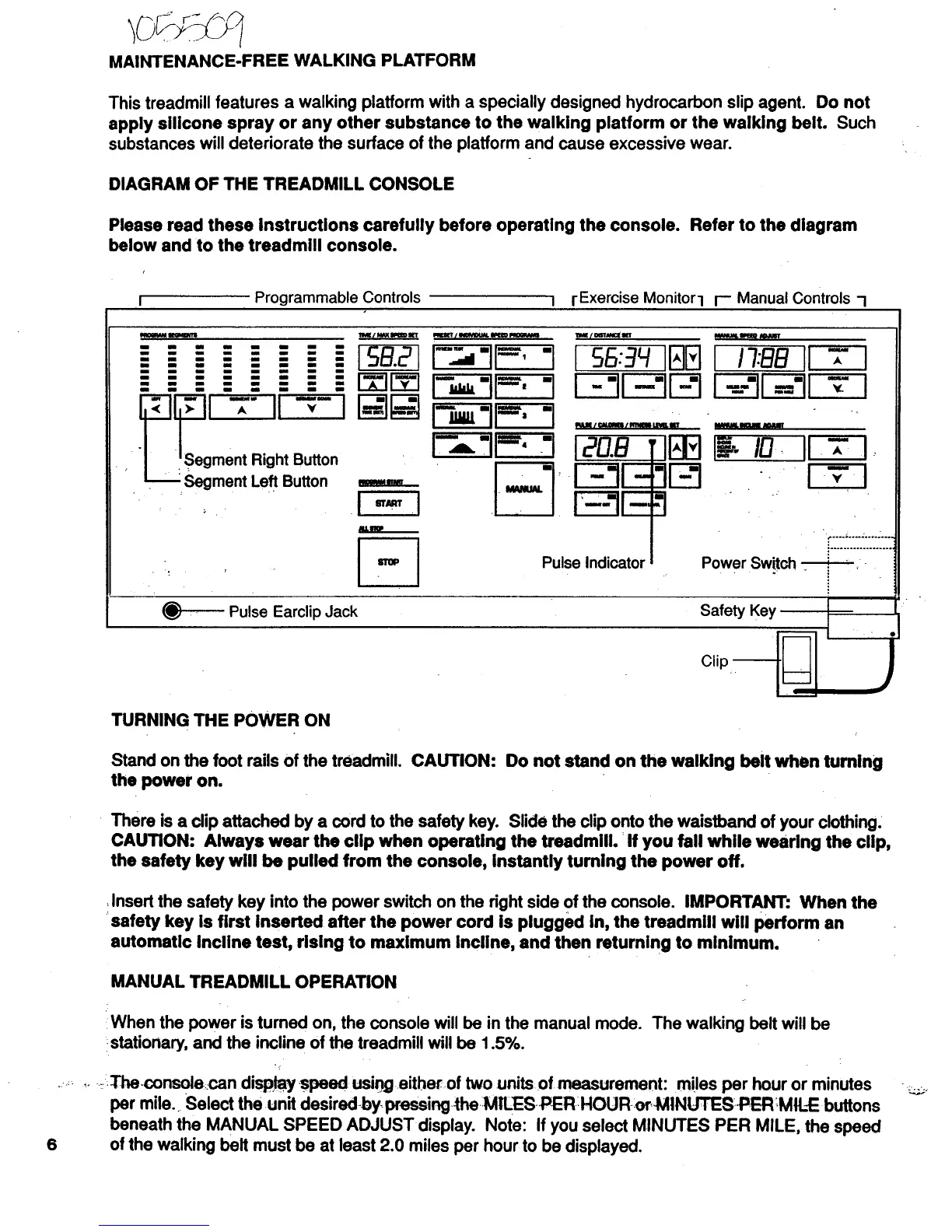 Image 933 - Manual Treadmill Operation; Turning the Power On and Safety Key