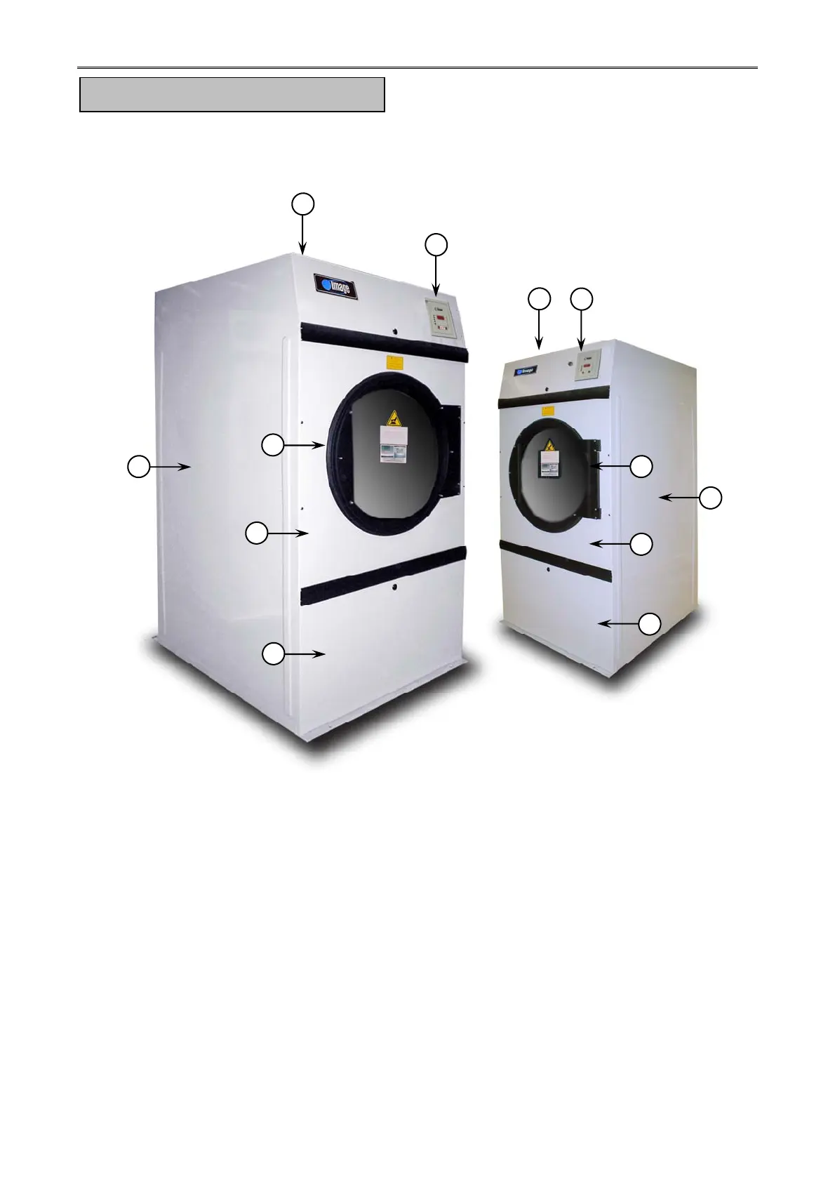 1. Dryer Model DE30, 50, 75 lb. Dryer Front View