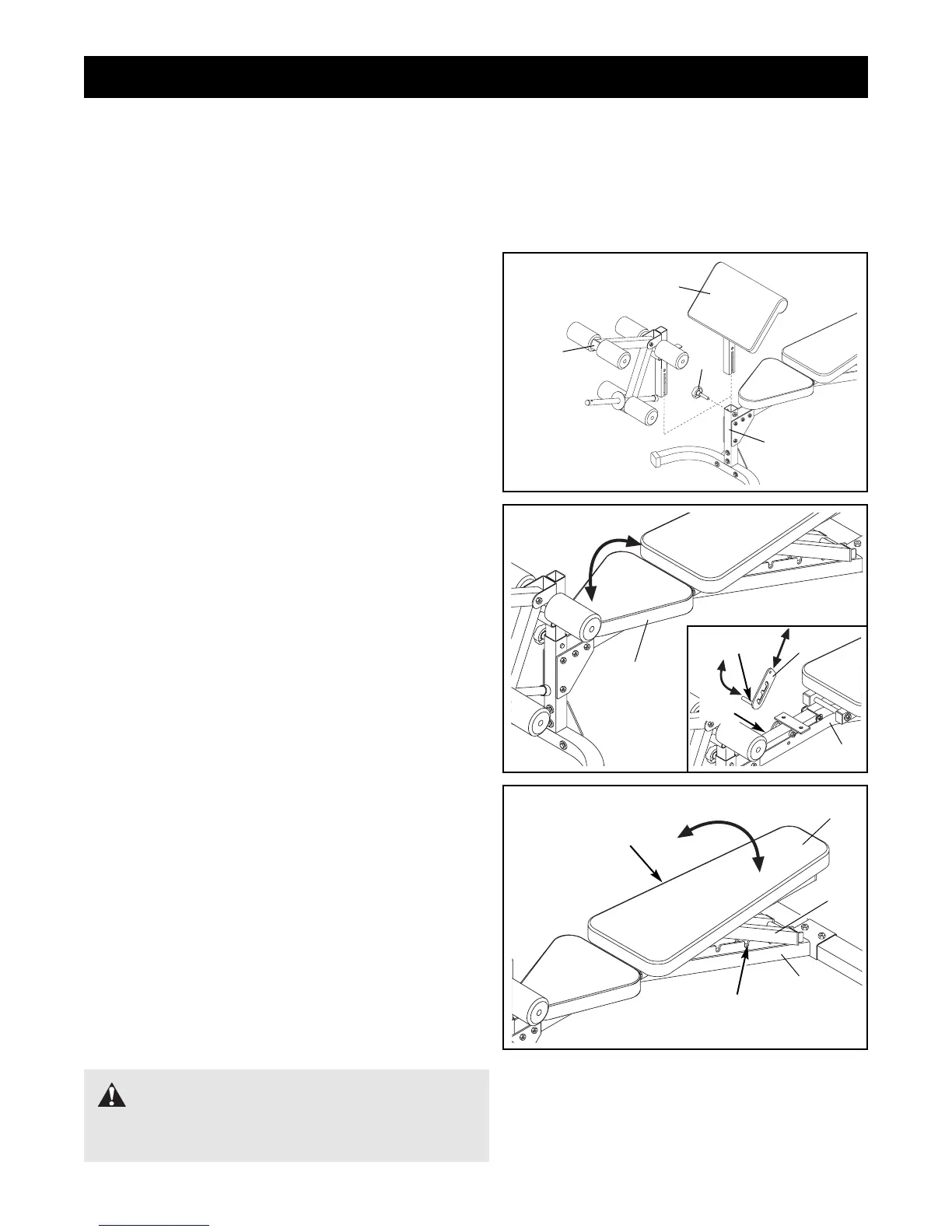 This section explains how the weight rack and bench can be adjusted. See the Exercise Guidelines on page 17 for
