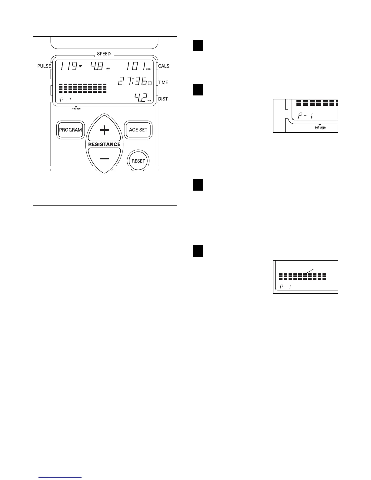 the pedals. As you press the resistance + or Ð
